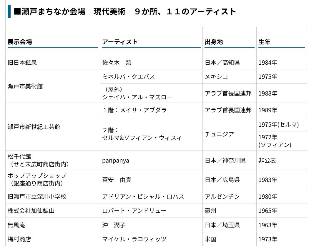 瀬戸市の数か所で各国のアーティストの作品を見ることができます。