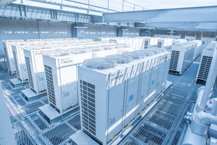 - 部屋ごとにエアコンがあるのではなく、全体を1つのシステムで制御。
