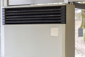 - まるで空気清浄機やストーブのように、自立型で室内の床上に設置されている。