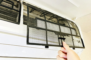 フィルター掃除を自動で行わないこのタイプのエアコンは、フィルターや熱交換器にホコリや汚れが溜まると室内の空気をスムーズに吸い込めなくなり、その分、風を吐き出せなくなります。