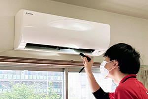 作業前にエアコンの運転確認を行い、問題がないことを確認します。