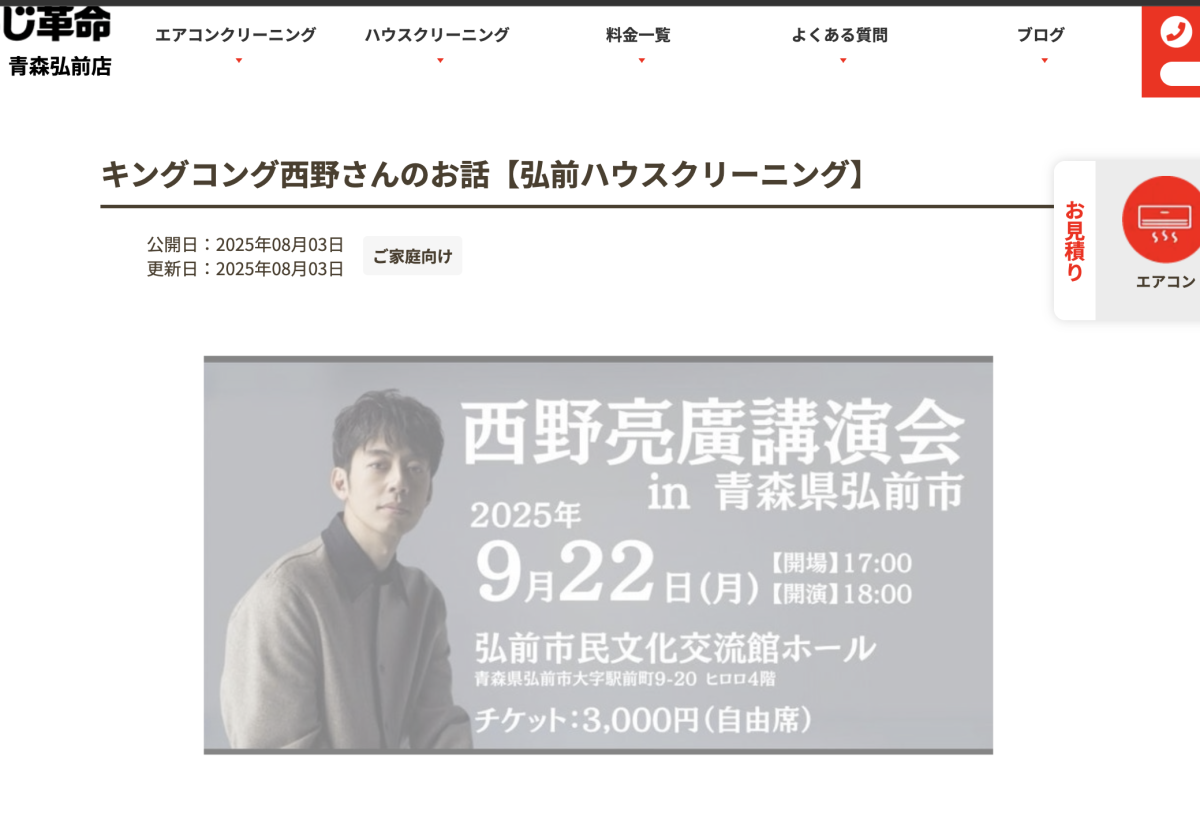 キングコング西野さんの講演会に行ってきました!青森県弘前市【ハウスクリーニング】