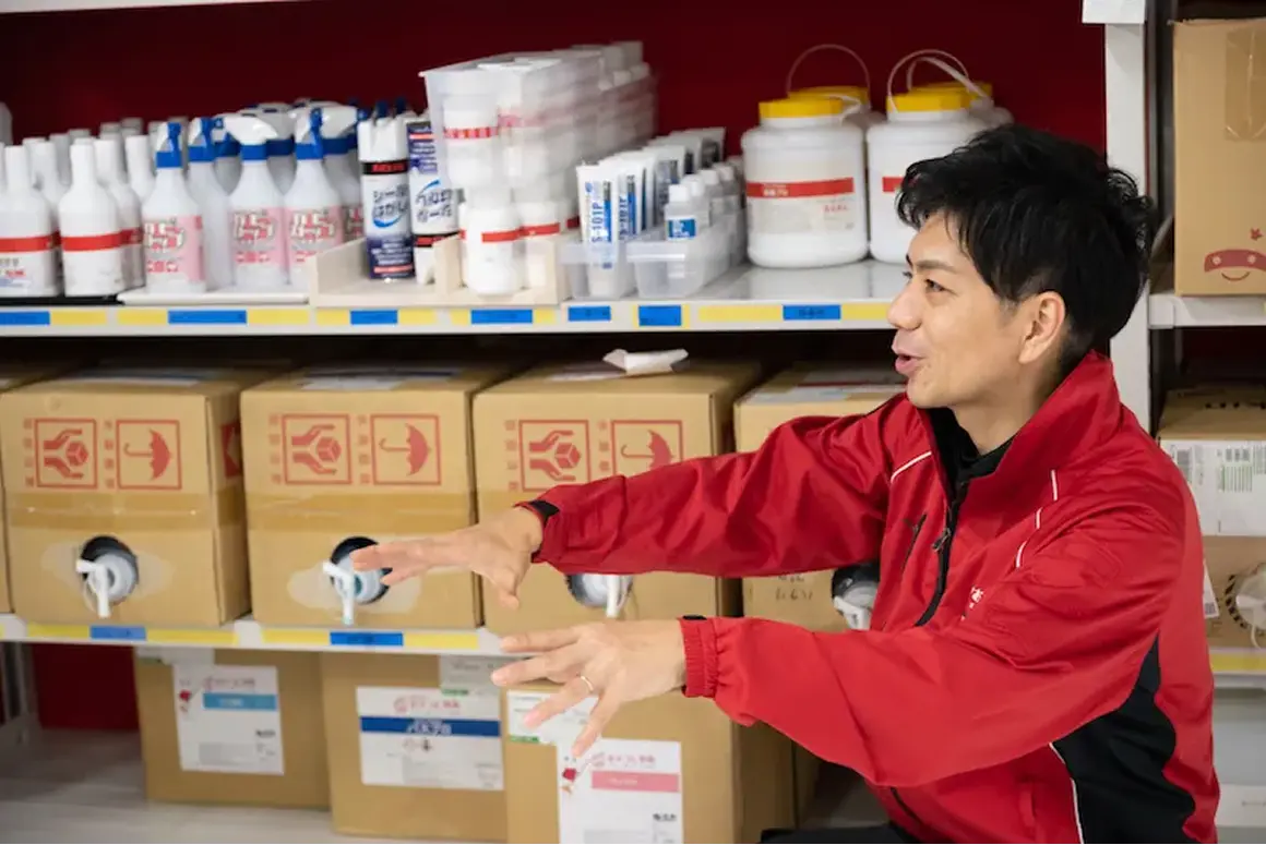 独自開発した洗剤、研修・現場作業で必要なプロの道具を完備!