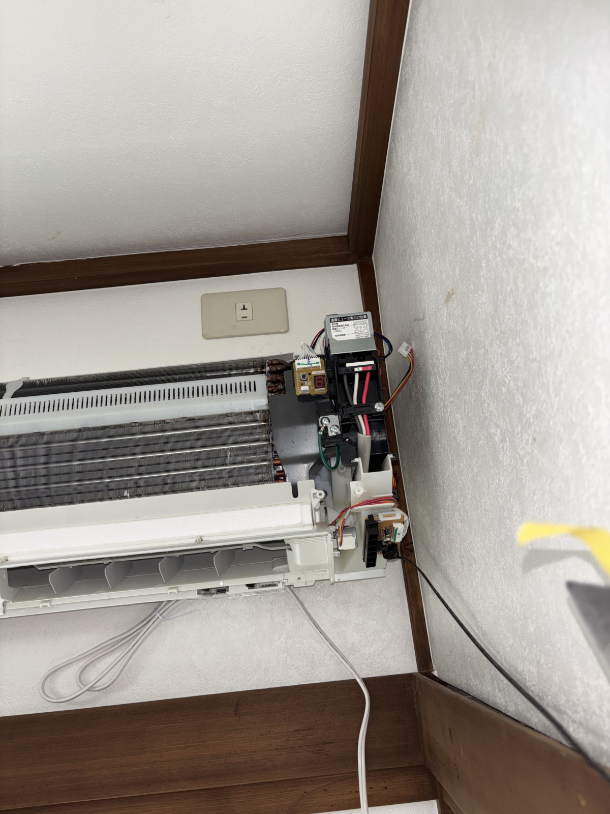 エアコンの基板やコネクタは右側にあることが多く、目視できないと分解の難易度がグンと上がります。正直、私も一瞬「いけるかな…?」と不安がよぎりました。