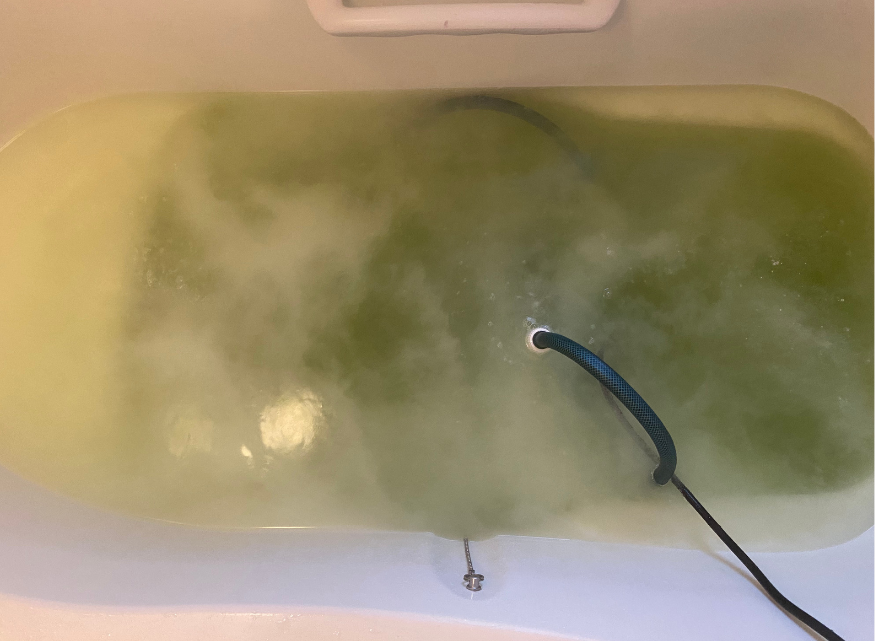 「おそうじ革命 福島いわき中央インター店」では、レジオネラ菌に有効とされる塩素濃度水(300ppm)を使用し、配管内を徹底的に除菌洗浄いたします!