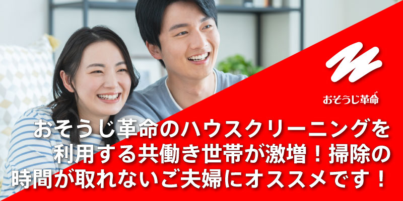 おそうじ革命のハウスクリーニングを利用する共働き世帯が激増!掃除の時間が取れないご夫婦にオススメです!