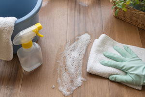 市販の洗剤を濃い濃度で使用した拭き掃除を行うと、洗剤成分が床に残ってしまいベタベタの原因になります。特にワックスがけされた床に合わない洗剤を使うとワックスが溶け、汚れと混ざって膜状に残留しがちです。その結果、歩いた時に靴下やスリッパがくっつくような嫌なべたつきを感じる床になってしまいます。
