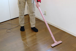 掃除機で床に落ちているホコリなどのゴミをしっかりと吸い取ります。