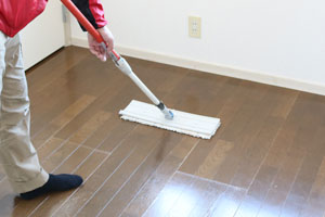 雑巾、モップなどを用いて床面の細かな汚れを拭き取ります。