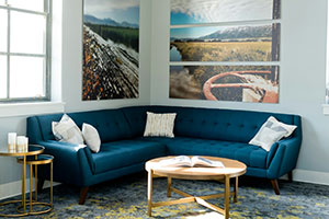いくつかの独立したパーツを組み合わせて配置を変えられるソファです。