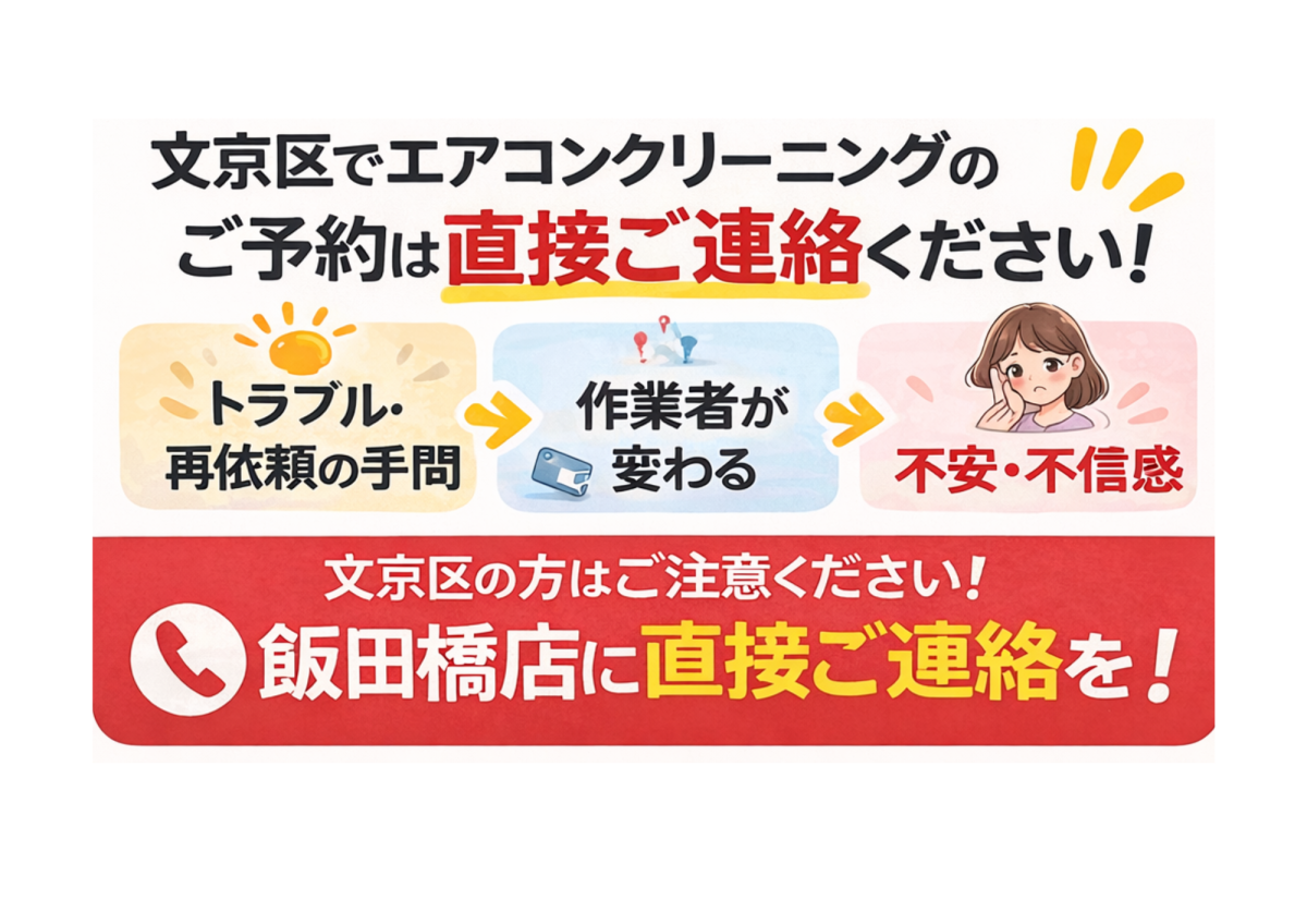 文京区でエアコンクリーニングをご検討のお客様は、おそうじ革命 文京区飯田橋店へ直接お問い合わせいただくことをおすすめしております。