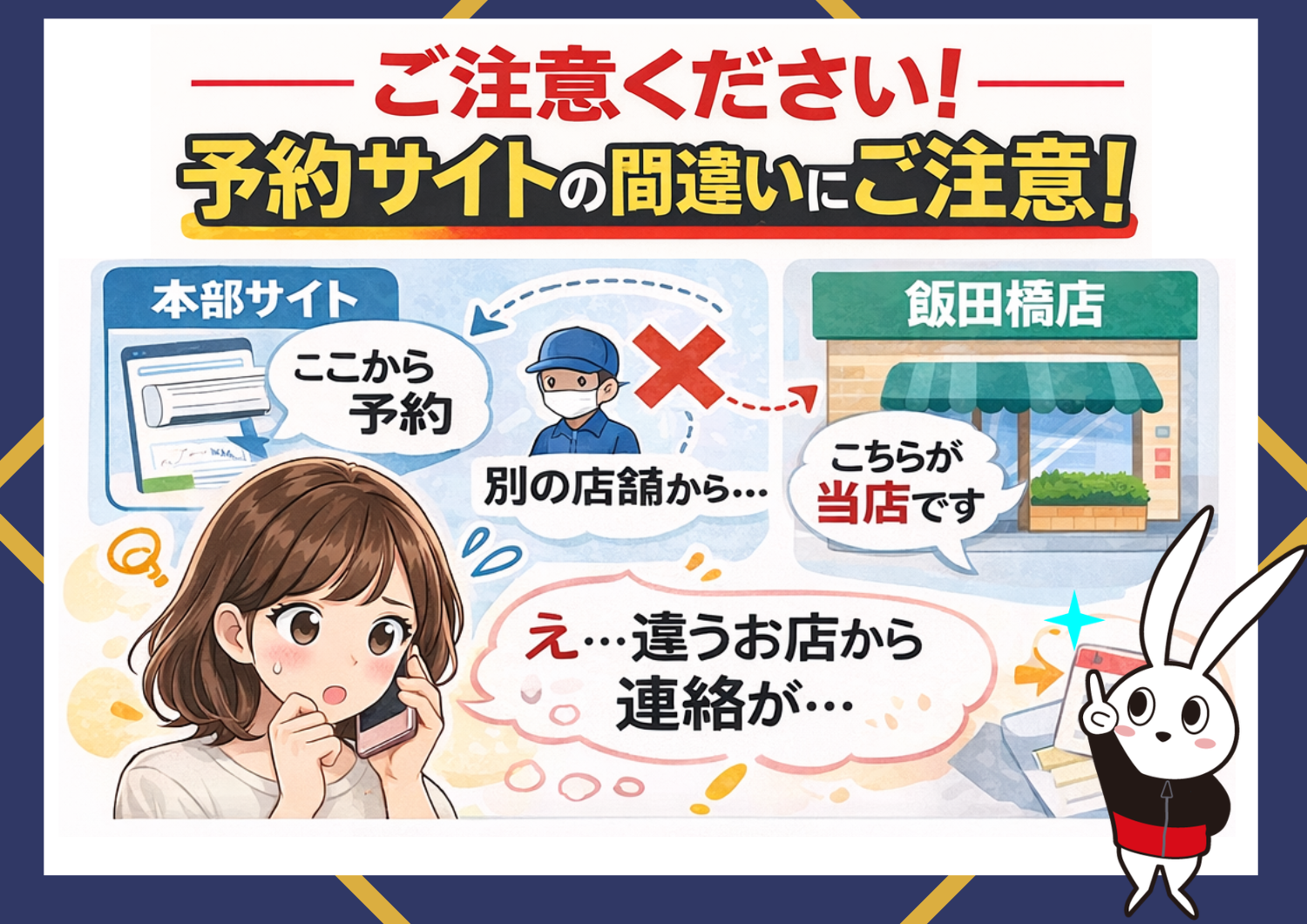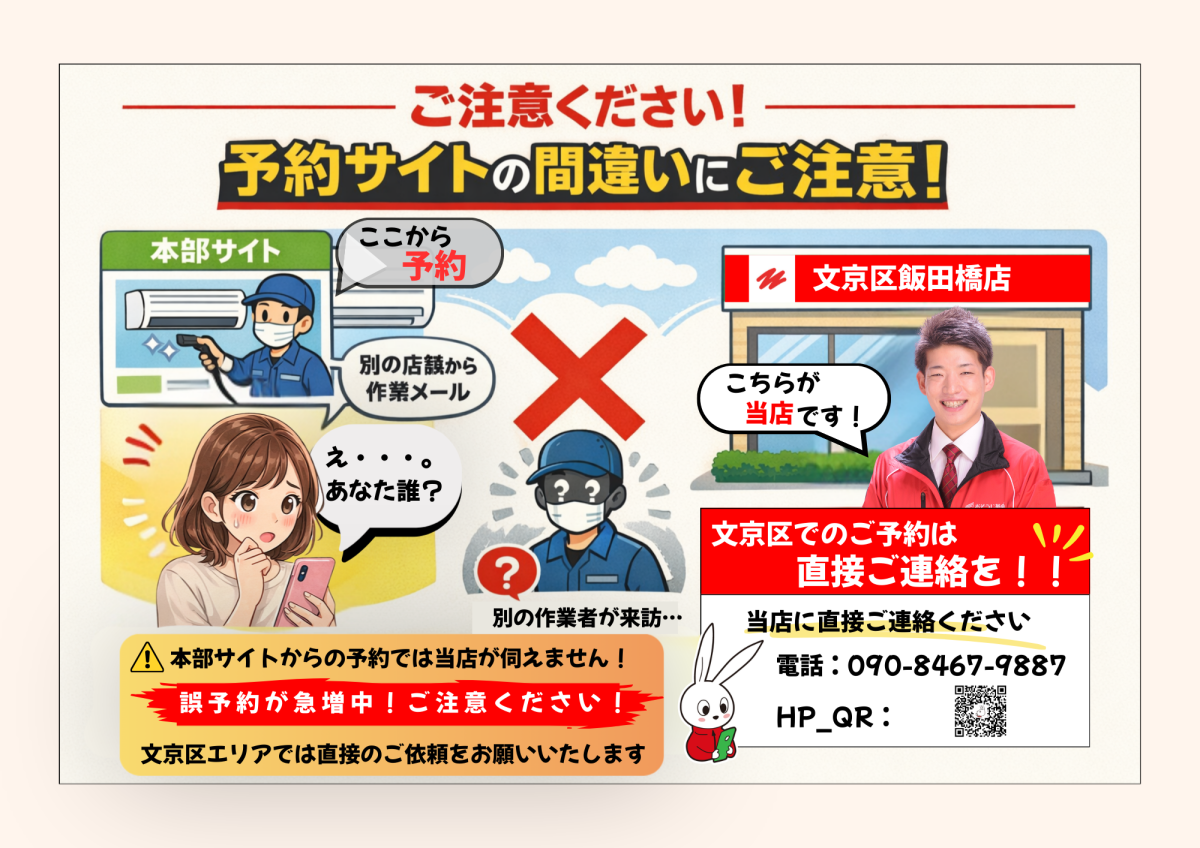 最近、エアコンクリーニングのご予約に関して「予約した店舗と違う店舗から連絡が来た」というご相談が増えています。
