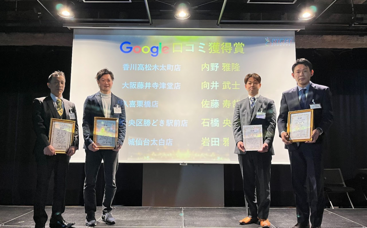 ・Google口コミ獲得賞→件数、評価ともに全国1位