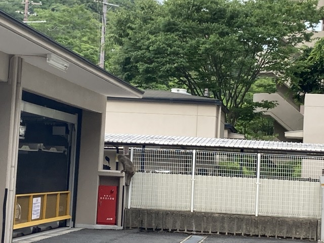 車で帰るときにマンションのすぐ近くの公園にもサルがいて、ダイナミックに木を登っていました。