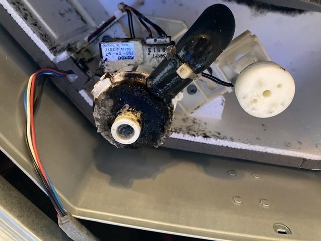 このヘドロのようなもののせいでドレンポンプが詰まってしまって、水漏れしていたようです。
