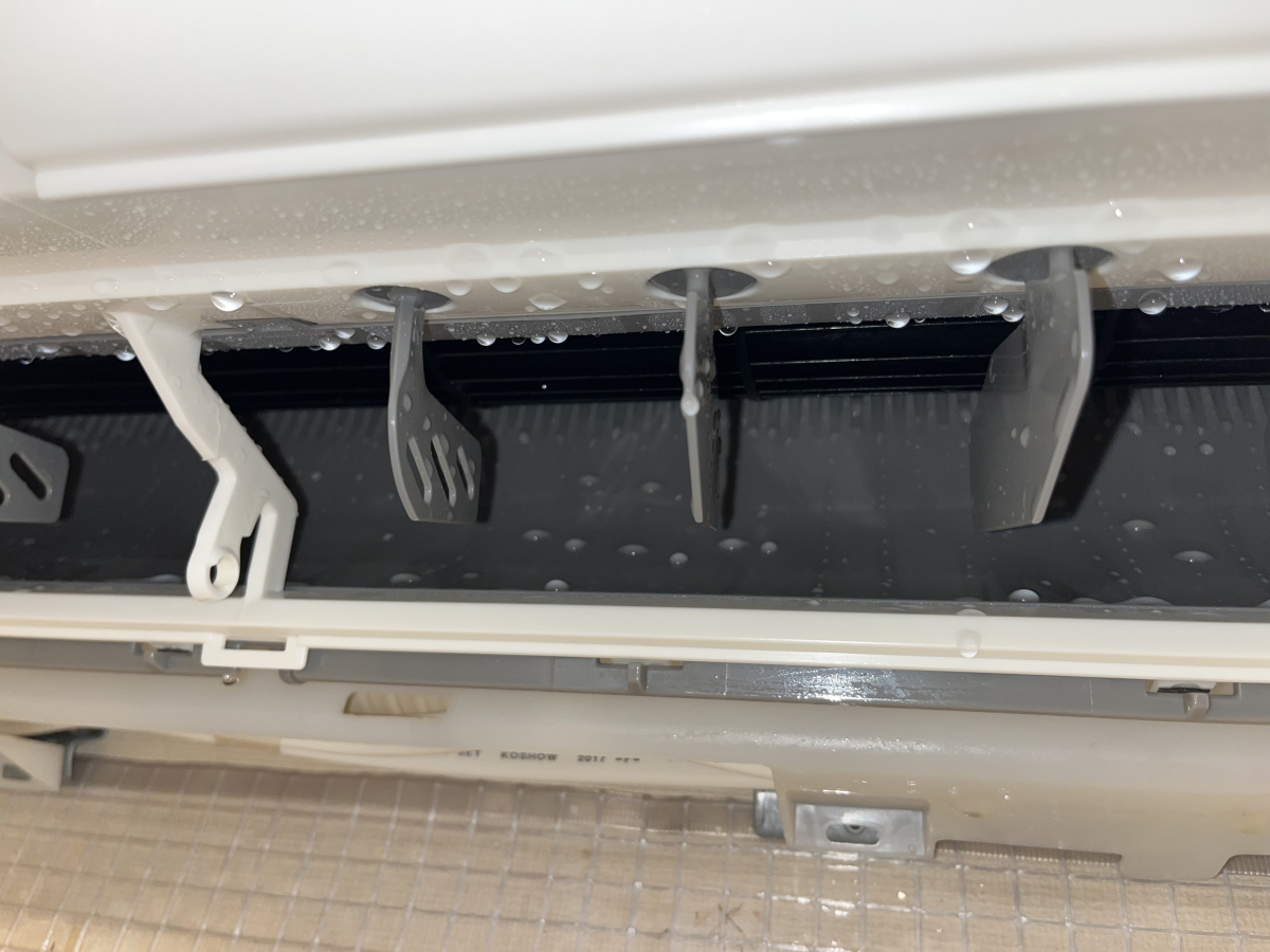 リビングについているエアコンでしたのでカビやホコリと油汚れも付いておりました。