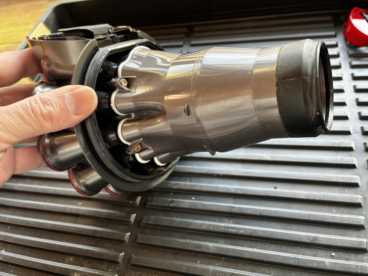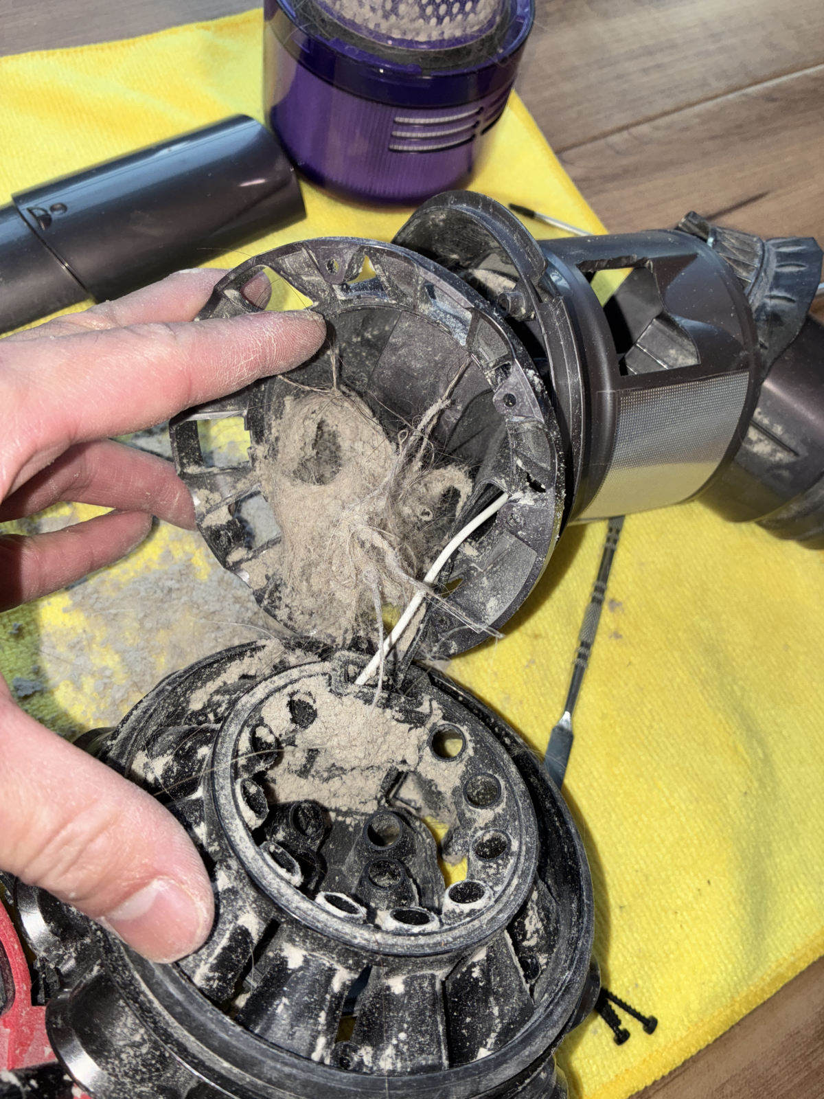 ダイソンのサイクロン内部は複雑な構造になっており、微細粉塵や抜け毛がつまりやすくなっております。