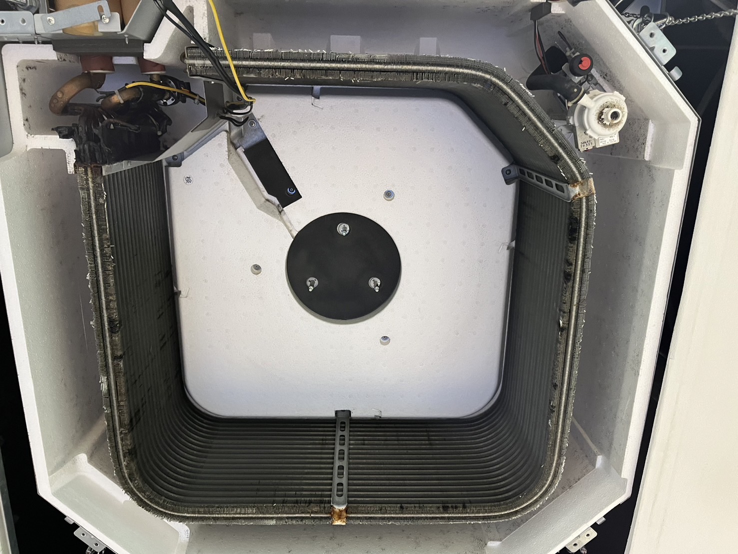 熱交換器にホコリが詰まり、ファンにも汚れが付着してしまってますので、動きが悪かったです。2011年製のもので、年数も10年以上経過しておりますので、故障の原因にもなりかねません。