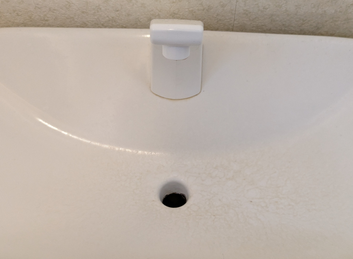 ここまでこびり付いた水垢になってしまうと市販の洗剤では厳しいかもしれません。