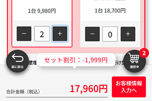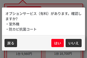 こちらの画面でオプションの選択が可能です。