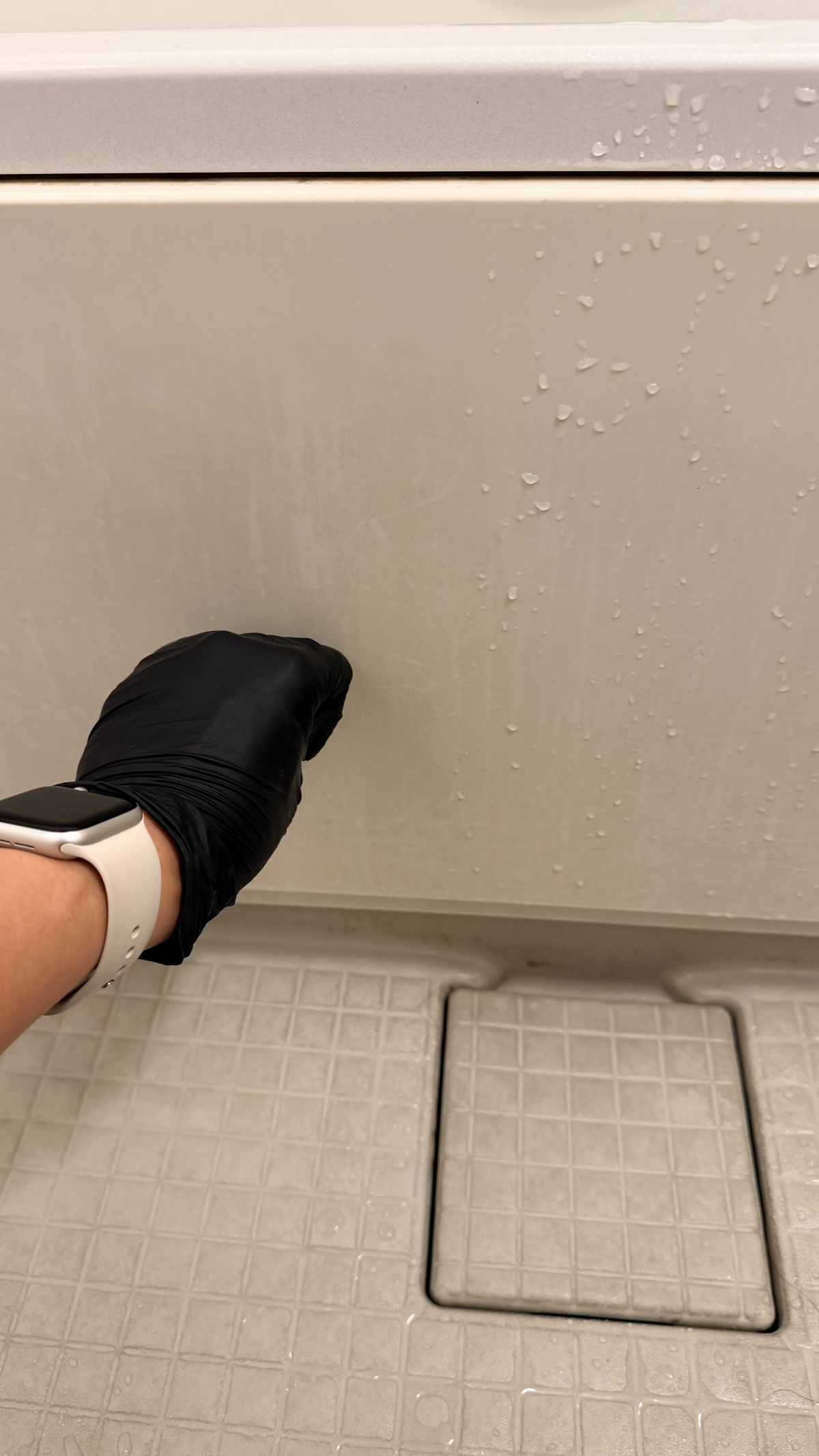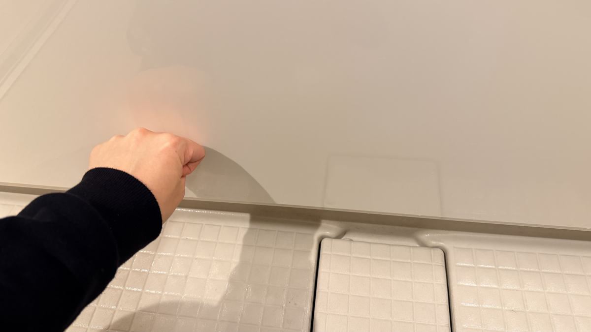 これは浴槽の外側(洗い場側)なのですが、反射具合を見比べると1枚目の写真が明らかに曇っているのが分かりますか?
