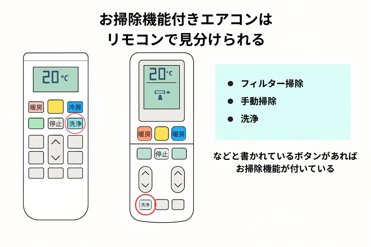 リモコンに「フィルターお掃除」や「自動清掃」といった表記があれば、そのエアコンはおそうじ機能を搭載している可能性があります。