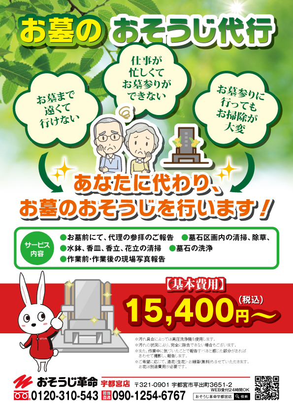 お客様に代わり、定期的にお墓のお掃除を行います。