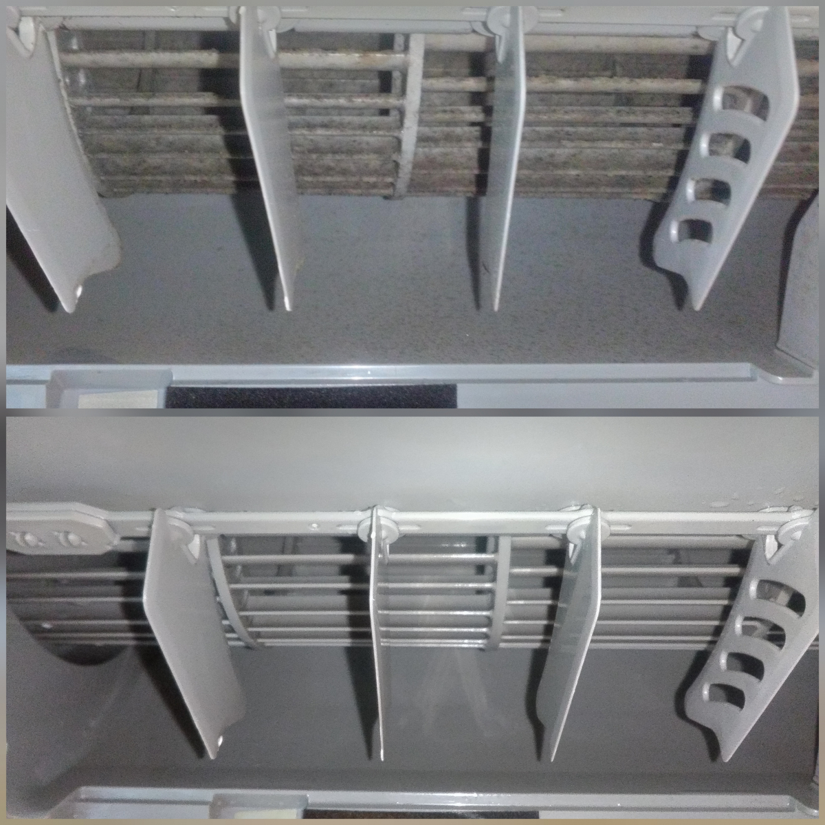 ①送風口や上下左右のルーバーにカビ(黒色の点々)があるか?