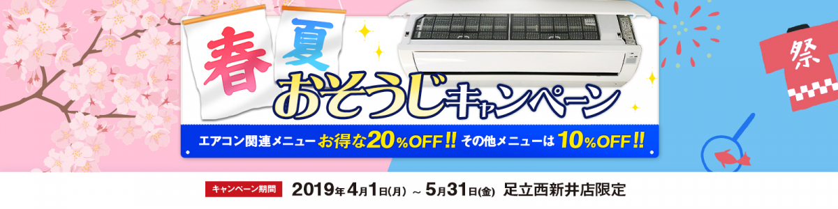 足立西新井店ではエアコン20%OFF・その他10%OFFのキャンペーンを実施中です。