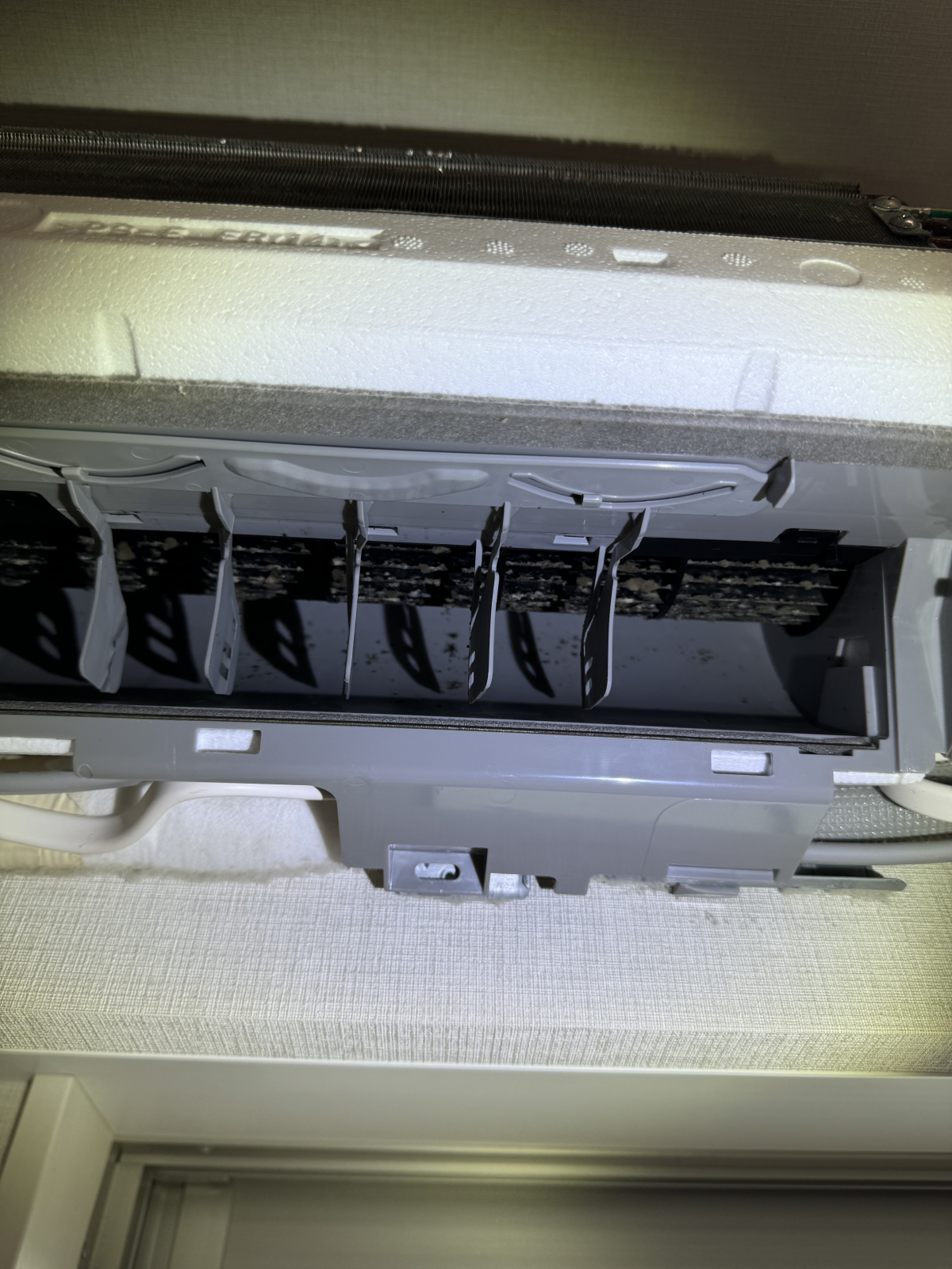 これが、カビや匂いの原因です。洗浄するとわかりやすく、もう一枚の写真のように真っ黒い液が出てきます。