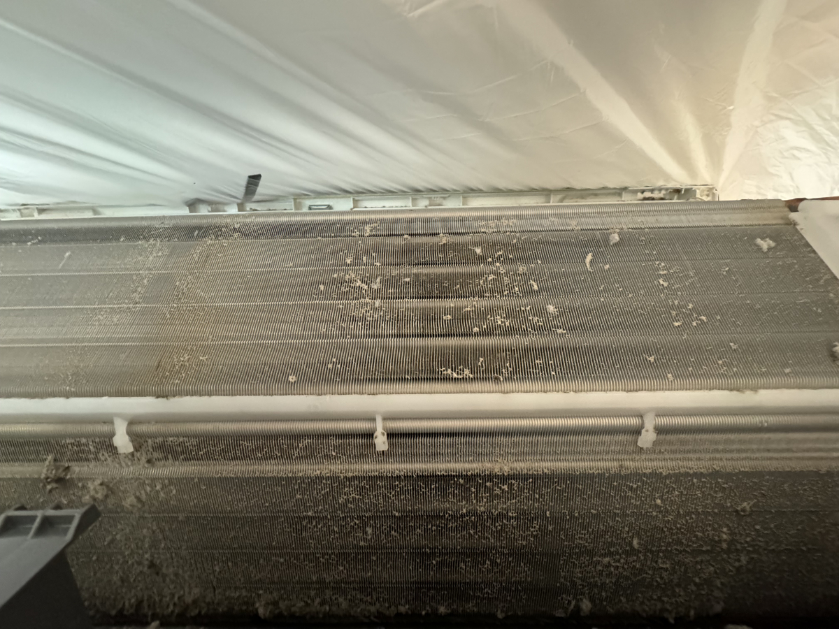 やっぱリビング設置エアコンは油汚れをどうしても吸ってしまいがち。できる限り、短いスパンでの内部クリーニングをオススメいたします!