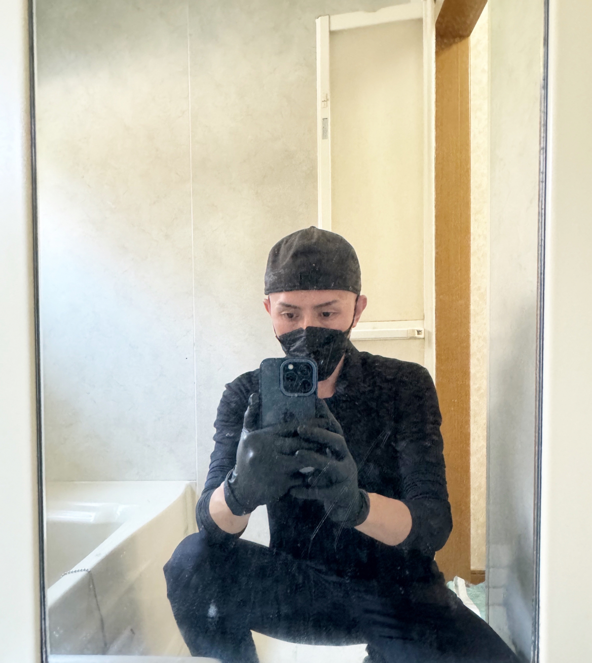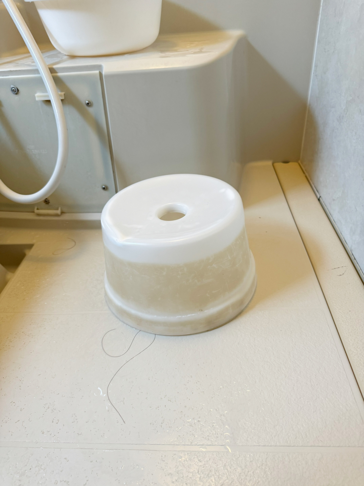 まずは石鹸カス汚れを落としたのち、水アカ汚れを除去。その後、カビ汚れを除去していきます。