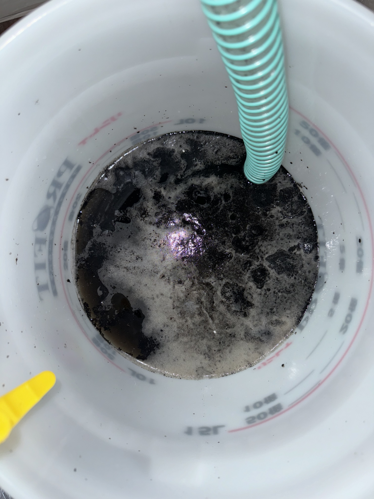 洗浄開始後、ボトボトと黒い塊がとれてきます。