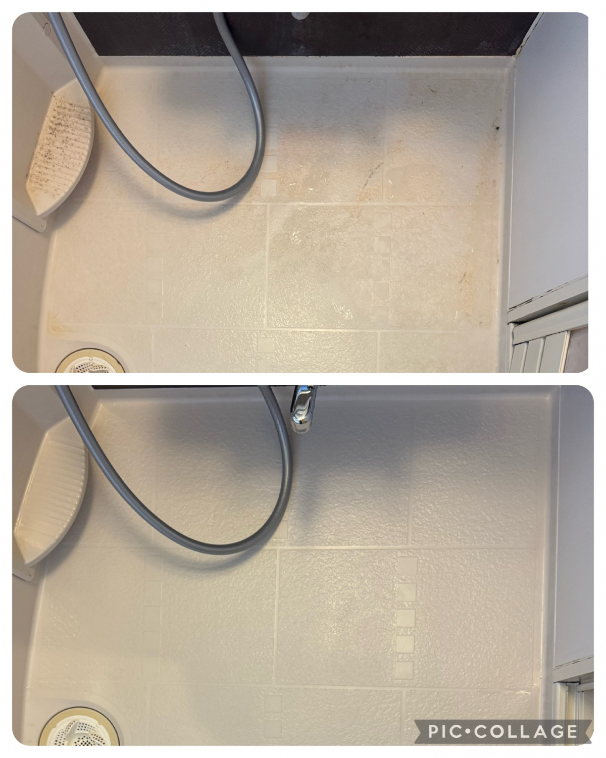 石鹸カス汚れからしっかり除去を行い、その後水垢へのアプローチ。最後にカビ汚れを除去していきます。