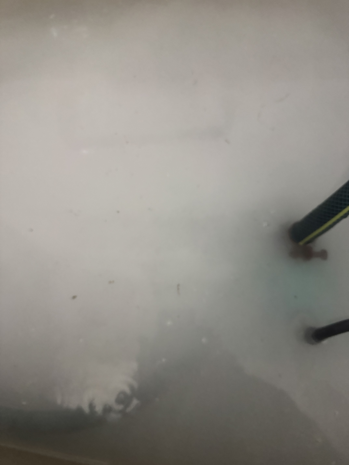 皮脂汚れ、髪の毛などなど配管内部はレジオネラ菌の餌が一杯!!約15分間しっかりと追い焚きを回します。その後、アルカリ性の薬剤を半分ずつ投入!中和させていきます。