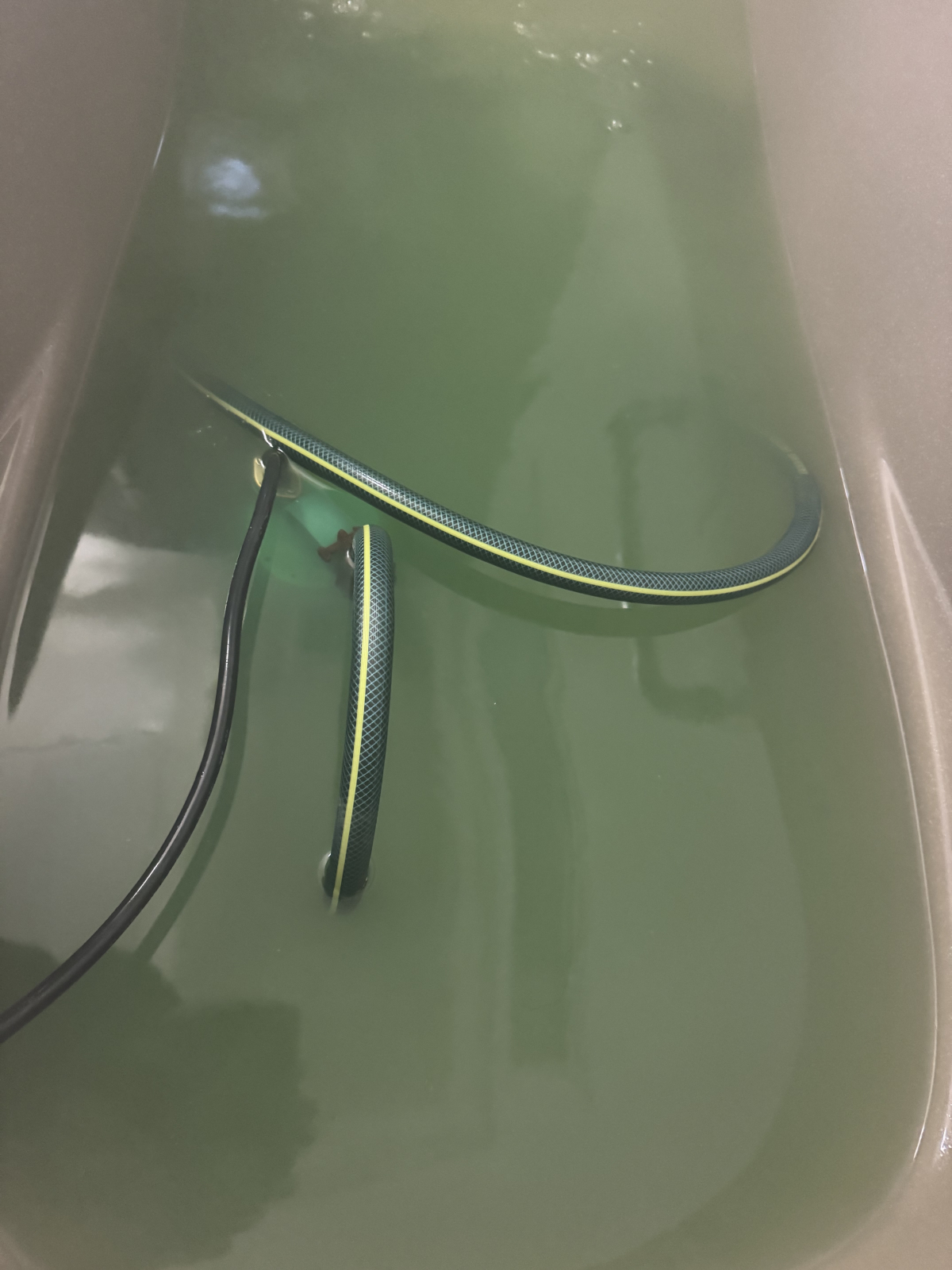 この色をみてしまうとどのお客様も、こんなに汚いお湯に毎日浸かってたなんて。とびっくりされます。