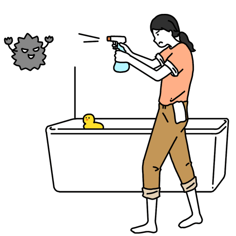 この手順で、市販の洗剤を使っても浴室のカビは落とせると思います!