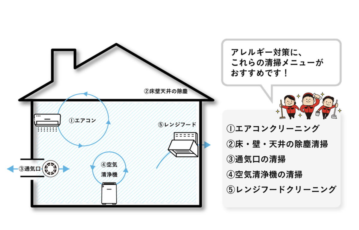おそうじ革命では、アレルギーをお持ちの方にも安心してお掃除を頼んでいただけるように、アレルギー対策メニューをご用意しております!