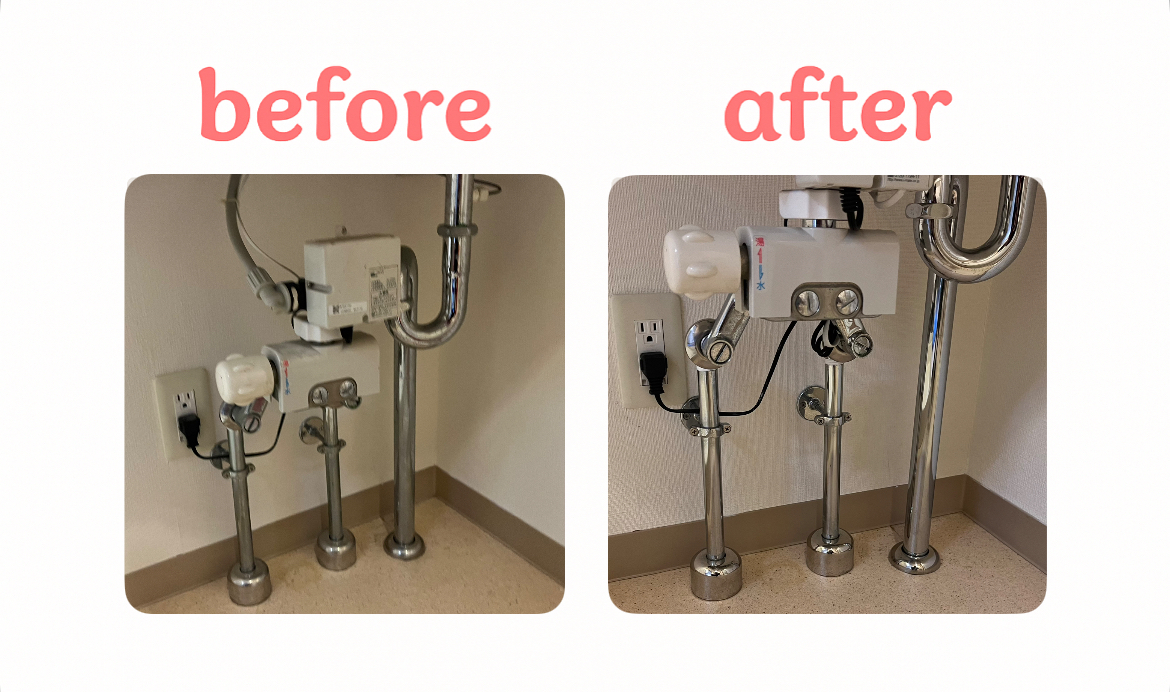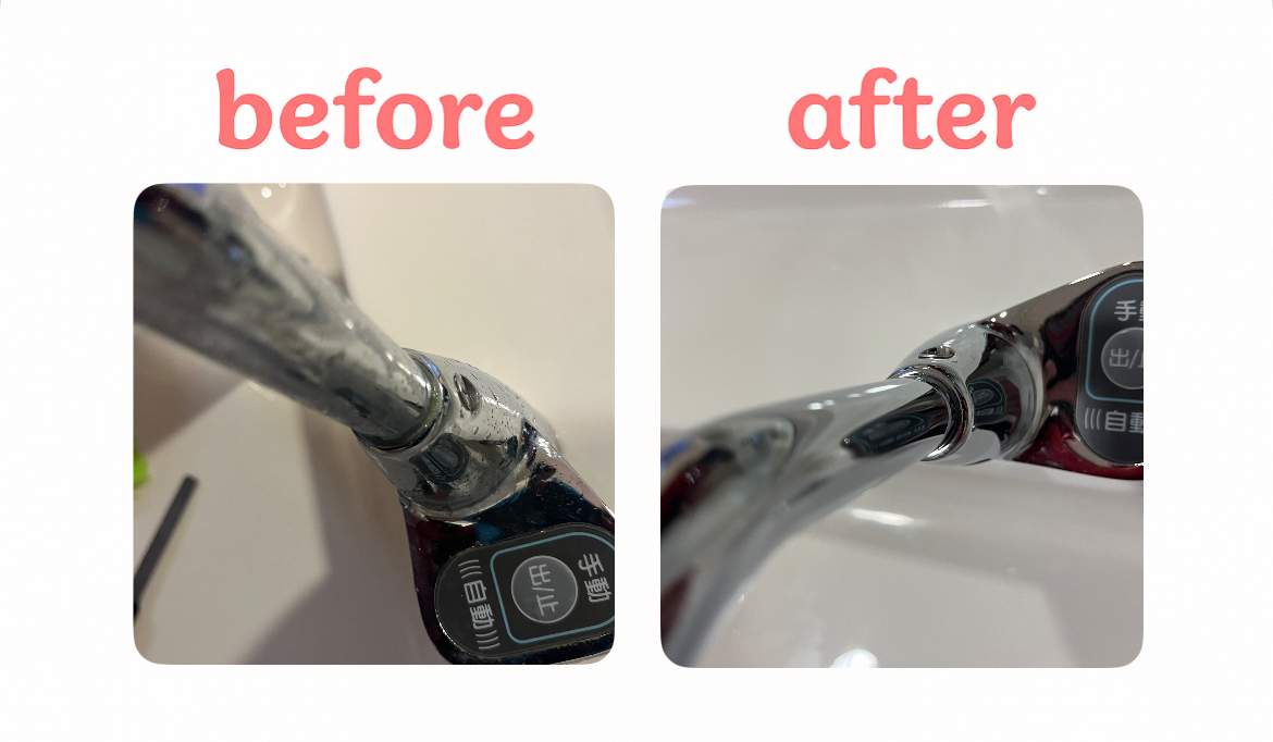 洗面ボウルや、鏡、蛇口はもちろん、換気扇や、下部のパイプ周りもキレイにさせていただきました。