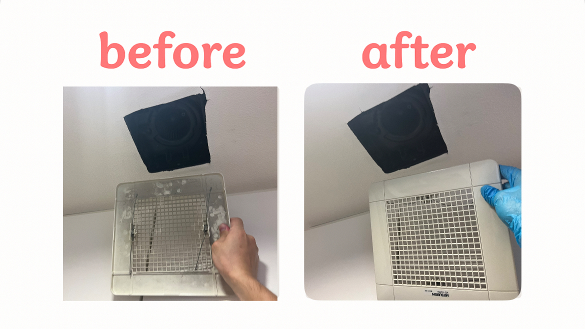 お料理の油を吸ってベタベタの状態のレンジフードは、換気扇の効率が下がってしまいます。