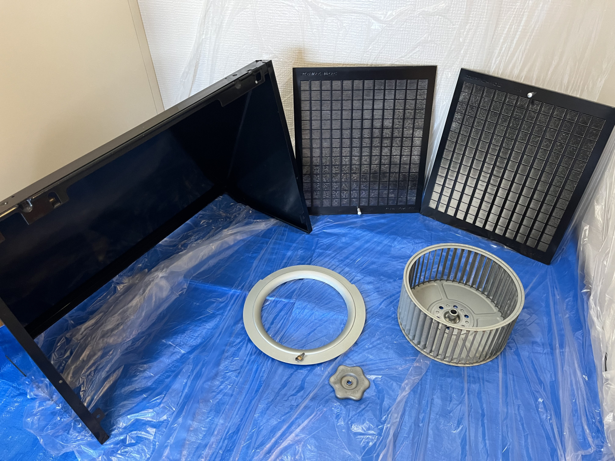 レンジフードの油汚れを落とすには、分解して、内部、パーツに分けて清掃することで効率よくキレイにできて、汚れ残りも少なくなります。