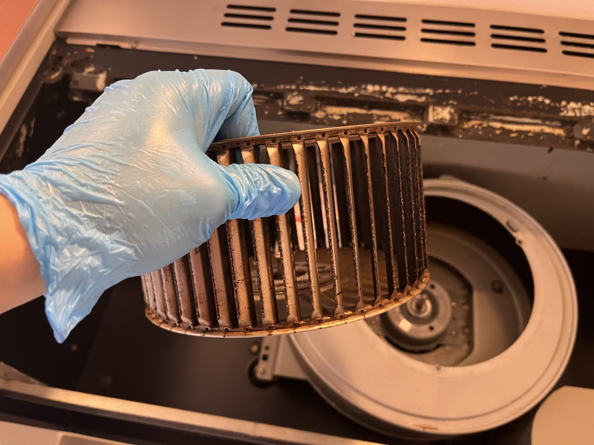 表面はキレイで、不織布のフィルターカバーをしていても、分解すると内部は油だらけ!