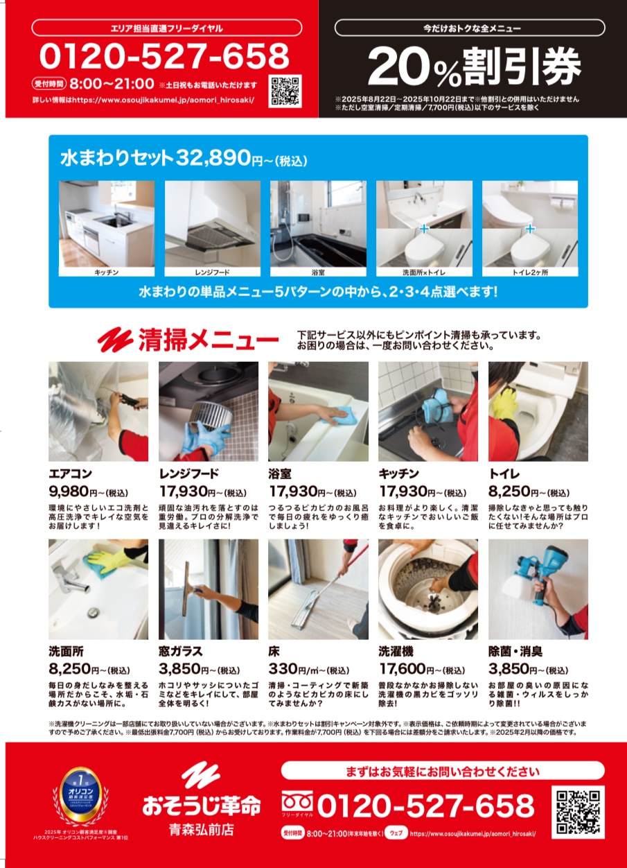 #おそうじ革命青森弘前店 #青森ハウスクリーニング #青森エアコンクリーニング #弘前ハウスクリーニング #弘前エアコンクリーニング #青森レンジフードクリーニング #青森浴室クリーニング