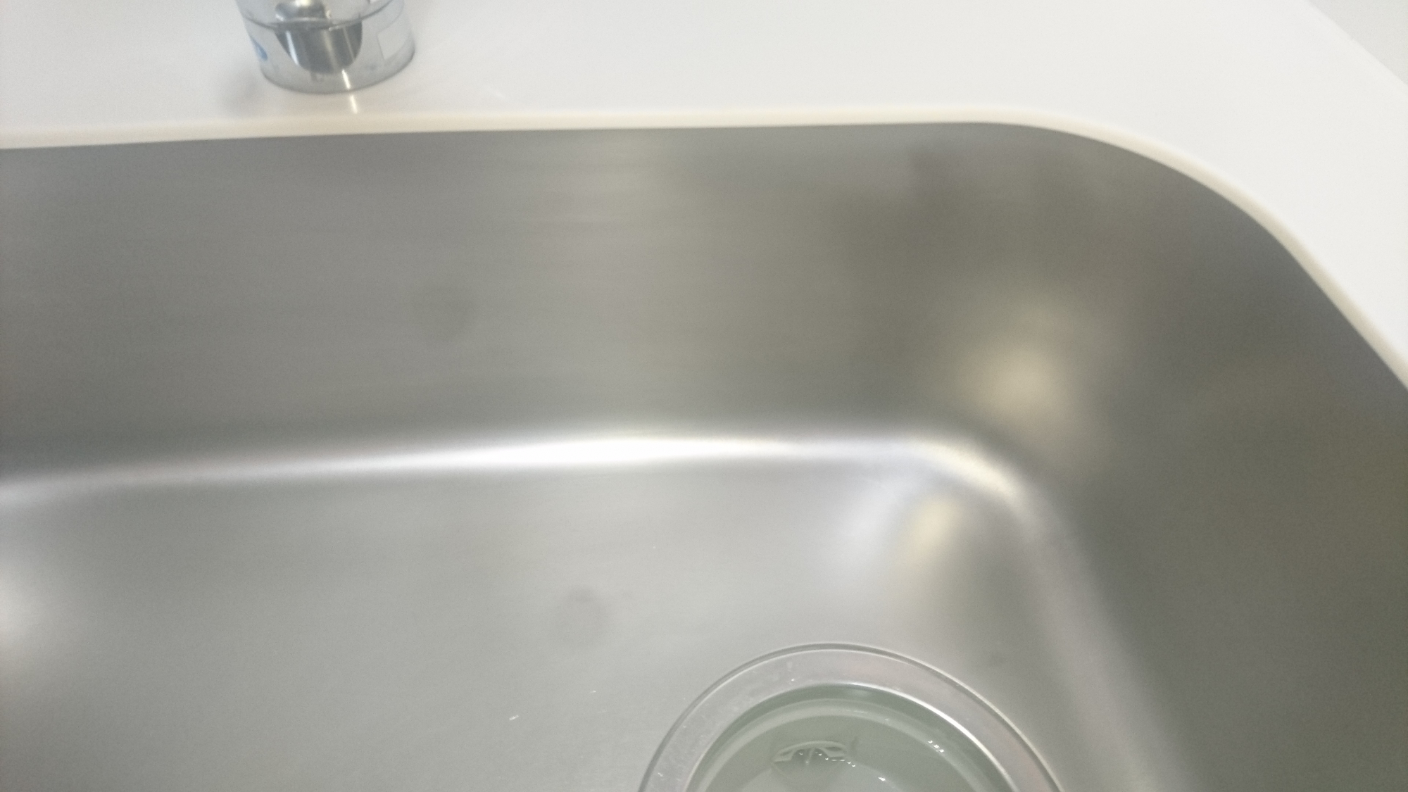 写真ではわかりづらいですが、壁面についたもやもやが消えたのわかりますでしょうか?横に傷入ってますが、これは恐らくお客様が何かの研磨剤か荒いパッドをつかって擦ったあとです。おそうじ革命の研磨剤はステンレスより硬度の低い物使っているので傷つきません。また傷の部分に水垢が入ってしまうとさすがに落としきれないので、あまり無理しないでおそうじ革命に頼んでほしいですね(^-^)