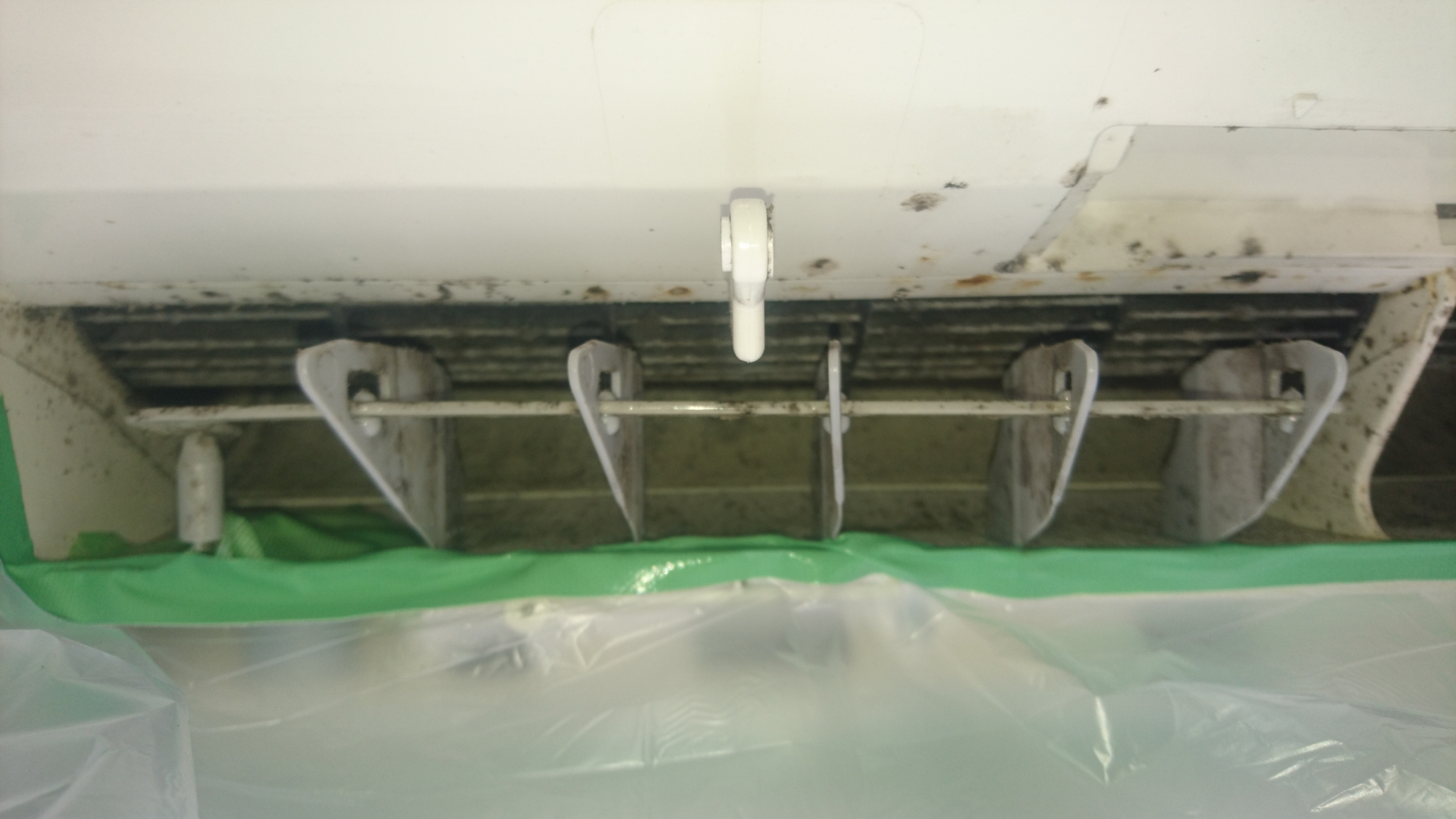 エアコン分解した吹き出し口の周りになります。右上にプラズマクラスターユニットが入ってるのですが、みてのとおりのカビだらけですw一応プラズマクラスターはシャープだけ♪とか宣伝では言われていますが、他にも似たようなものは他メーカーにもあります。ダイキンだとストリーマ、パナだとナノイーとかですね。いずれも何年も使用するとカビ生えてます。エアコンクリーニングは必要という事になります。