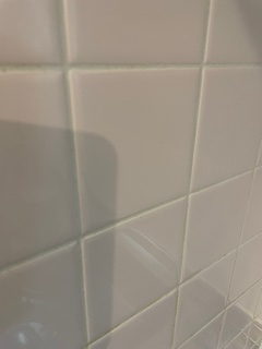 今回のお客様が特に気にされていたのはタイルの壁一面に飛んだ油の飛沫の塊でした。