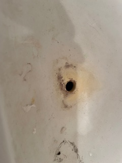 見出し画像は清掃前のトイレの洗面ボールについた水アカで別の画像は清掃後です。