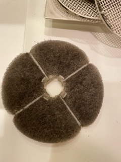 見出しの画像は給気口の内部で右の画像は何年もお手入れしなかった本来は白いフィルターです。
