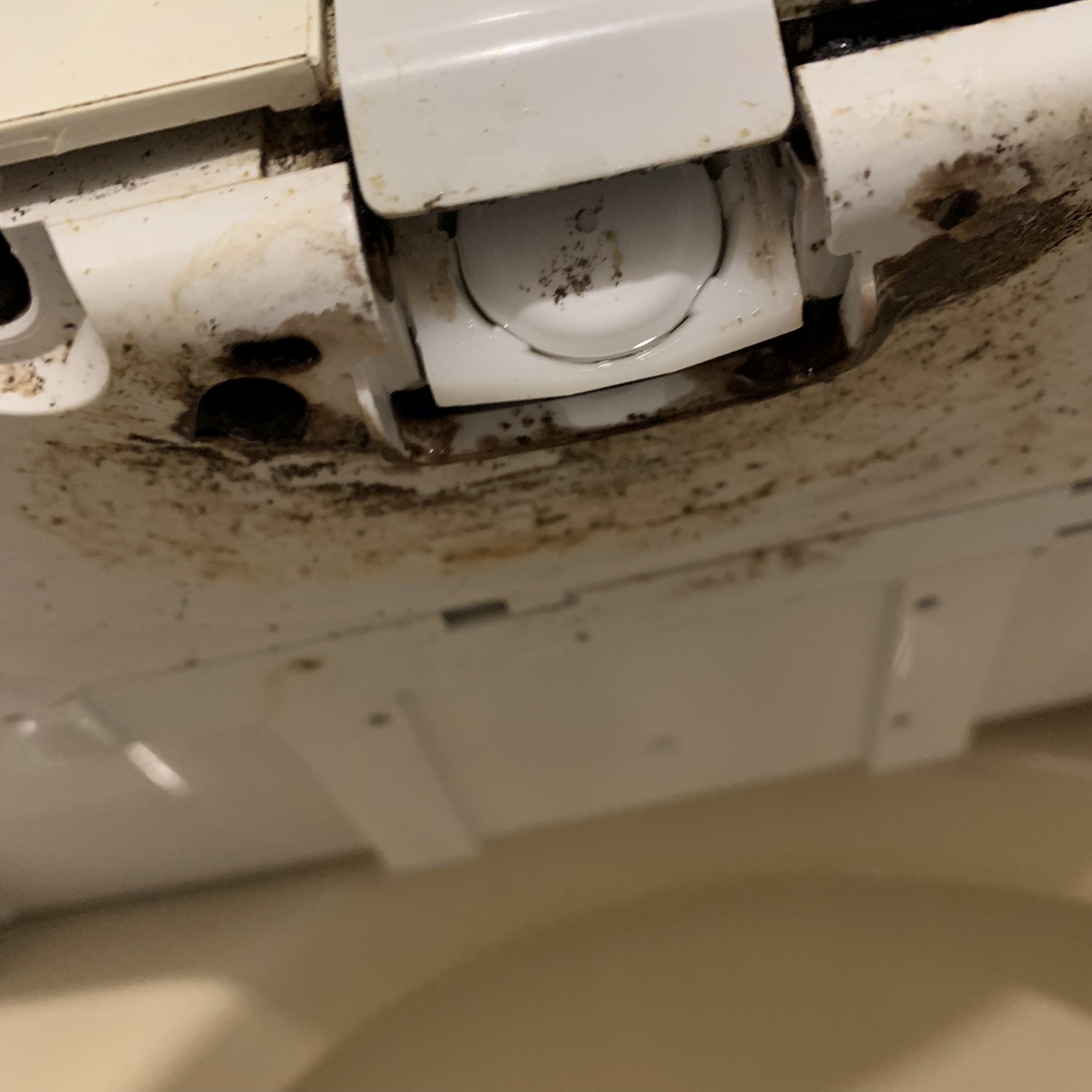 今日の作業はトイレ清掃です。トイレは毎日使う場所の一つでもあり常に綺麗にしておきたい場所です。もちろんみなさんのおたくも定期的に掃除していることと思います。当店でもそれほど比率は高く無いですが月に何件かトイレ清掃のお仕事をいただきます。当店でのトイレ清掃の手順をご説明しますと「上から順に」の法則どうりにまず換気扇のカバーを外し拭くか汚れ具合によって丸洗いします。それからファンにこびり付いた大量の埃を掻き出します。大抵湿気を含んで黒っぽくカビています。ちなみにこの埃の正体ですが、なんだと思いますか?答えはトイレットペーパーから出たチリです。換気扇がきれいになったら次は手洗いボールです。大抵は水が溜まった跡、水アカがこびり付いています。水アカに酸性洗剤をかけて手洗いボールの素材が陶器であれば耐水性のサンドペーパーで磨くようにします。サンドペーパーの目(あらさ)もかなり種類があるので素材を見て最適なものを選びます。この時に水の出るステンレス製のノズルに酸性洗剤がかかり時間を置くと変色してしまうので素早く行いノズルも洗います。それから壁についている水洗などのリモコンスイッチを外して裏表とも拭きます。次は便器ですが、まず便座カバーを外して洗剤をかけて拭きます。凹凸の中もミニスクレーパーという器具を使って埃や汚れをとります。。この時注意しなければならないのは、素材が非常に傷つきやすいのでタオル地のウエスではなく化繊のウエスを使うということです。次にウオッシュレットのノズルを出してカビ取り用の洗剤をかけてメラミンスポンジで擦ります。何もしていなければカビで黒くなっています。ここまで終わるとウオッシュレット付きの便座を便器本体から外します。外し方は機種によってことなり、特殊な器具を使うものもあります。写真は便座を外した所です。ここも主に酸性洗剤とメラミンスポンジできれいにします。あとは便器本体の汚れを落とすわけですが、落ちにくい汚れが主に二つあって一つは便器の水面の際に着いた黒いリングの汚れでもう一つは便器の縁の裏などにこびり付いた尿石です。どちらも洗剤をかけて耐水ペーパーで磨くようにするわけですが、使う洗剤は前者はカビ取り用のもので後者は酸性洗剤です。この二つは混ぜると有毒な塩素ガスが発生するので扱いには気を使います。便器本体もきれいになり元どおりにセットすると便器の周りを拭き取り最後は床を拭きます。特に電気のコードや便器の裏側に溜まった埃は見逃しません。
