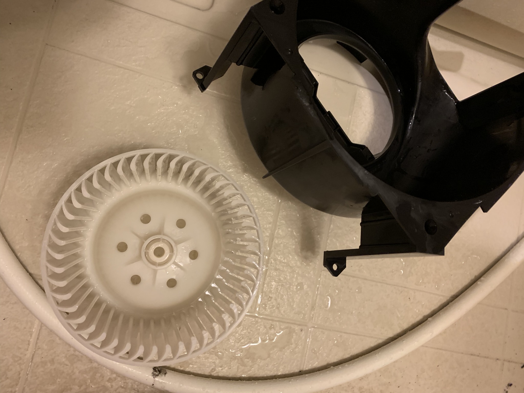 今回のお客さまは市内のマンションにお住まいのご夫婦で、浴室の換気扇のカビが気になるのできれいにして欲しいとのことでした。大抵のお宅の浴室には換気扇がついていると思いますが、きちんとクリーニングした事のあるお家は意外と少ないのではないでしょうか?お風呂の換気扇は想像していただいて分かるとおり何もしなければかなり汚れています。なぜならカビの胞子、埃、水分(湿気)をいっぺんに吸い込むからです。つまりカビの生える条件が整っているからです。今回も洗う前と洗った後では違う換気扇をみているようでした。